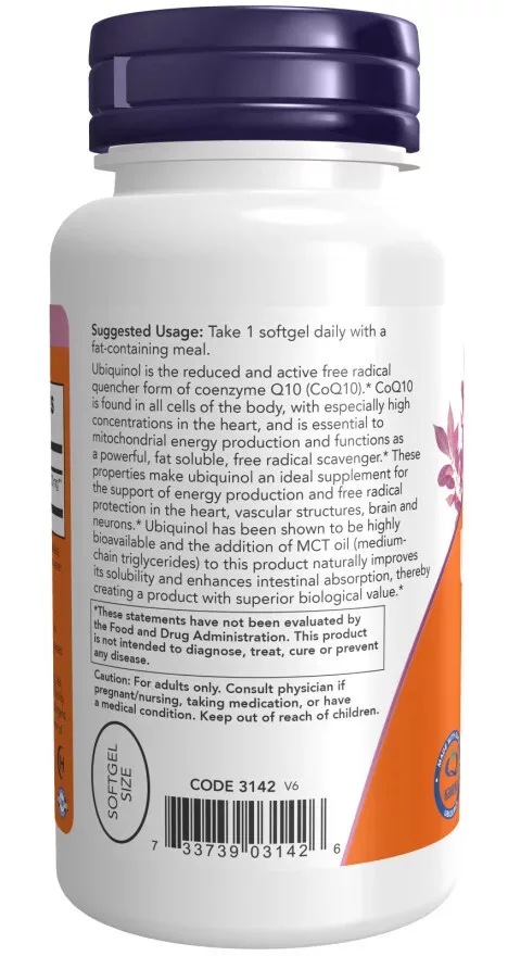 Now Foods Ubiquinol 100mg 120 Softgels 120 Gélkapszula